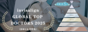 という一点ではないでしょうか。当院院長の八木龍は、個人で上位5%の歯科医師のみが持つInvisalign Diamondステータスを保持し、さらに日本でも約30名のみ選ばれるInvisalign GLOBAL TOP DOCTORS 2025に選出されています。